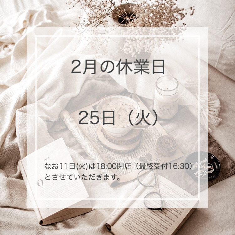 ・2月25日(火)は、サロン・スクールともにお休みをいただきます。